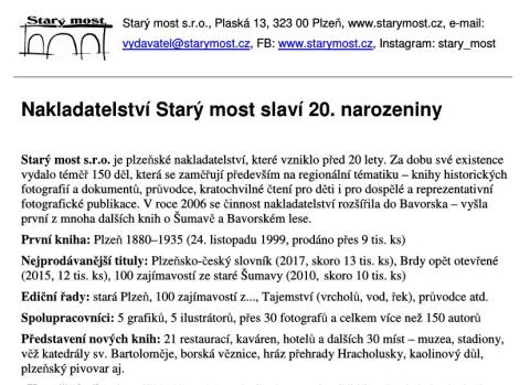 Před 20 lety vyšla naše první kniha. Několik zajímavostí můžete najít v tiskové zprávě, kterou jsme u příležitosti tohoto výročí vydali. Najdete ji v sekci Ke stažení.