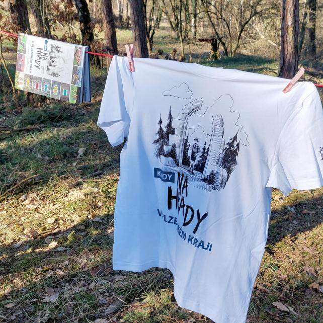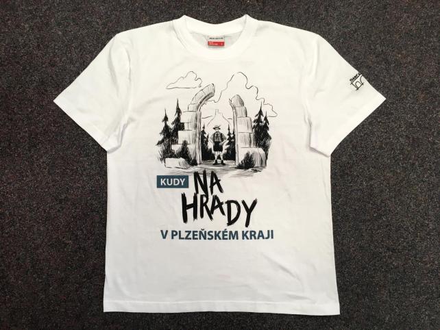 V balíčku najdete tričko Kudy na hrady v Plzeňském kraji a stejnojmennou knihu autorské trojice Jan Hajšman, Milan Novobilský a Jaroslav Vogeltanz.
