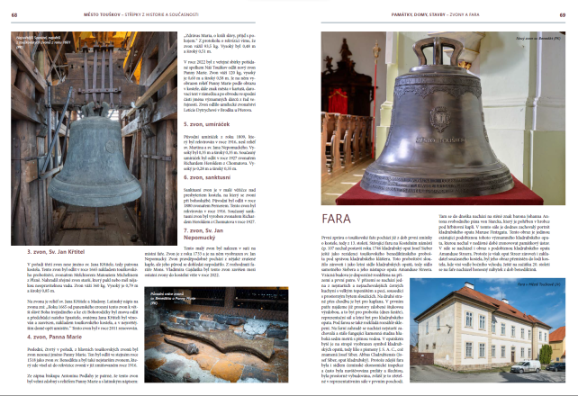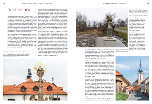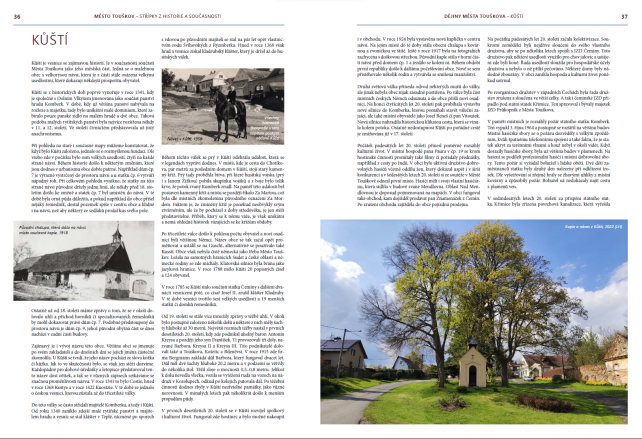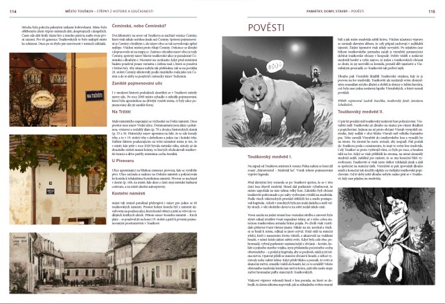 První velká publikace o Městě Touškově a obci Kůští. Kniha nabízí historii malebného městečka s dlouhou a zajímavou historií, soupis místních památek a zajímavosti k domům a objektům. Publikace obsahuje velký počet historických i současných fotografií. Součástí jsou i výlety po okolí města, legendy s ilustracemi Terezy Šmucrové či přehled místních názvů a osobností. Prostor je také věnován historii obce Kůští, která je nedílnou součástí Města Touškova.