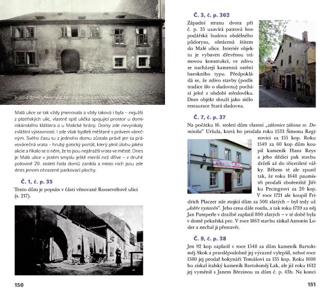 Velmi podrobný lexikon centra Plzně zahrnuje všechny domy, církevní stavby, veřejná prostranství či pomníky v historickém centru, vymezeném sadovým okruhem. Každý dům má v knize vlastní heslo se základními informacemi o historii, stavitelích či obyvatelích. Kniha obsahuje více než 600 současných i historických fotografií. Na vnitřní straně zadní obálky rozkládací mapka s vyznačením domů v centru města.