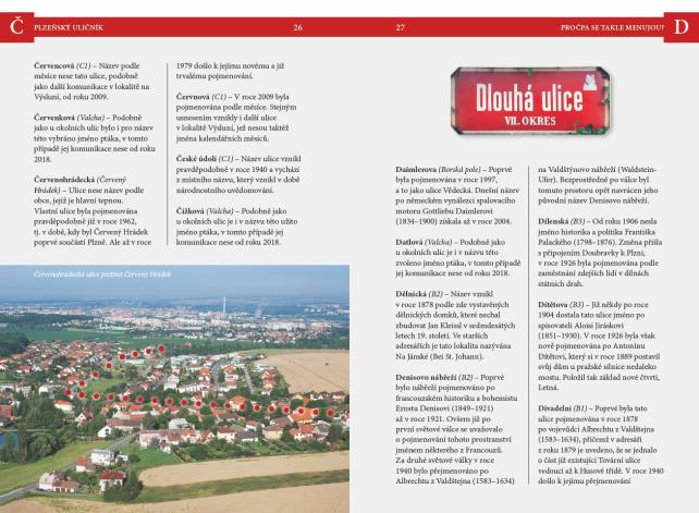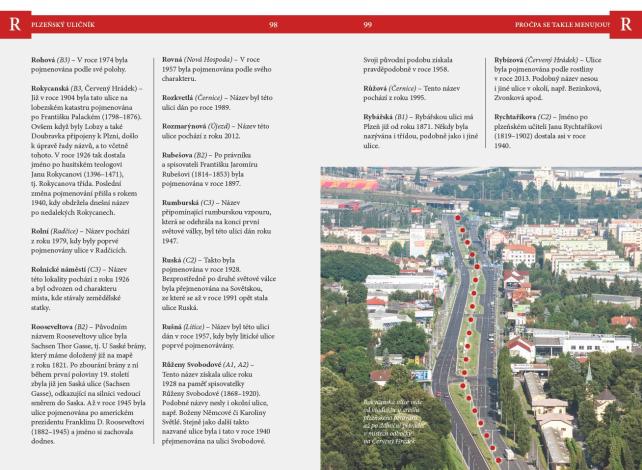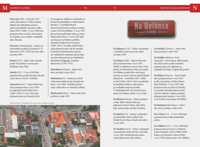 Poslední díl plzeňské trilogie, která se zabývá plzeňským nářečím a místopisem (2017 - Plzeňsko-český slovník, 2018 - Plzeňský místopis), je zaměřen na historii názvů plzeňských ulic. Vysvětluje, proč dostaly jednotlivé ulice svá jména, po kterých osobnostech se jmenují nebo zda původ názvu je odvozen od historického místopisu. Zajímavé jsou i změny názvů ulic často poplatné politickým událostem. Autorkou knihy je Kateřina Fantová z Archivu města Plzně.