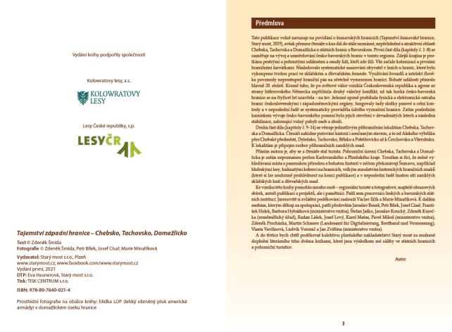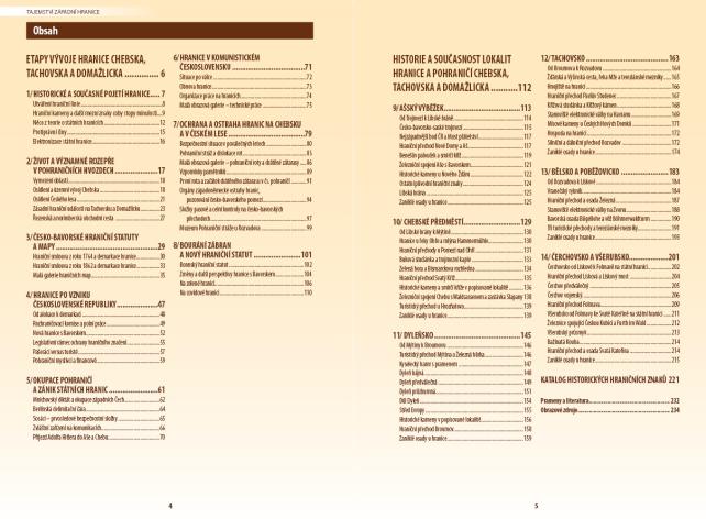 Výpravná publikace pojednává o vývoji česko-bavorské hranice na Chebsku, Tachovsku a Domažlicku. Popis začíná od zemských hranic přes jejich právní zformování v 18. a 19. století, následují prvorepublikové státní hranice a okleštěné pohraničí v letech 1938–1939, dále poválečná obnova hranice, její stabilizace i trendy na přelomu 20. a 21. století. Důraz je kladen na čtyřicetileté období neprostupnosti česko-bavorského pomezí, kdy zde fungovala fyzická i elektronická ostraha hranic československými a západoněmeckými orgány. Ve druhé části kniha rozebírá jednotlivé lokality a je tak zároveň turistickým průvodcem pro návštěvu příhraničního regionu. Publikace je vybavena bohatou fotografickou přílohou včetně mapových podkladů.