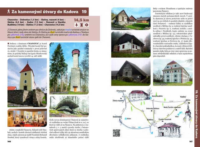 Sedmašedesát tras vás provede po cestách, stezkách i pěšinách mezi Všeruby a Frymburkem. Autor vybíral převážně trasy, které leží mimo tradiční turistické cíle.