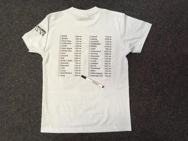 Tričko univerzálního střihu s potiskem vpředu a vzadu a s výšivkou (logo Starý most) na levém rukávu. Vpředu motiv z obálky knihy Kudy na šumavské vrcholy, jejímž autorem je Václav Šlajch. Vzadu přehled 34 šumavských vrcholů, kterým se kniha věnuje. K tričku je přiložen černý fix na textil, kterým můžete snadno označit zdolané vrcholy. Potisk byl vytvořen pomocí sítotisku. Pokud si chcete tričko objednat rovnou i s knihou, pořiďte si náš balíček.