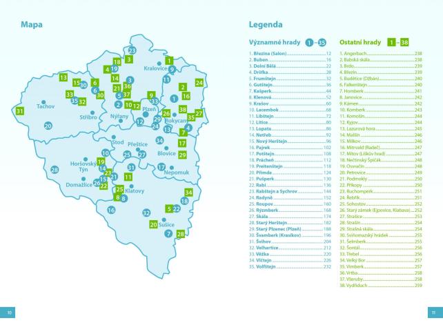 V knize najdete tyto hrady: Březina (Salon) • Buben • Dolní Bělá • Dršťka • Frumštejn • Gutštejn • Kašperk • Klenová • Krašov • Lacembok • Libštejn • Litice • Lopata • Netřeb • Nový Herštejn • Pajrek • Potštejn • Prácheň • Preitenštejn • Přimda • Pušperk • Rabí • Rabštejn a Sychrov • Radyně • Roupov • Rýzmberk • Skála • Starý Herštejn • Starý Plzenec (Plzeň) • Švamberk (Krasíkov) • Švihov • Velhartice • Věžka • Vlčtejn • Volfštejn a další...