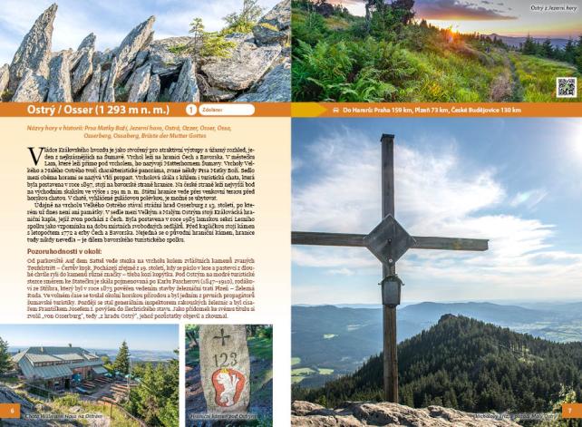 V knize najdete tyto vrcholy: Bobík • Boubín • Černá hora • Falkenstein • Haidel • Hoher Bogen • Huťská hora • Javor/Arber • Javorník • Kleť • Knížecí stolec • Kramolín • Křemelná • Libín • Luzný/Lusen • Medvědí hora • Ostrý/Osser • Pancíř • Plechý/Plöckenstein • Poledník • Riedelstein • Roklan/Rachel • Sedlo • Schwarzeck • Smrčina/Hochficht • Sternstein • Sulzberg • Svaroh/Zwercheck • Svatobor • Špičák • Třístoličník/Dreisesselberg • Věnec • Vítkův kámen • Zámecký vrch