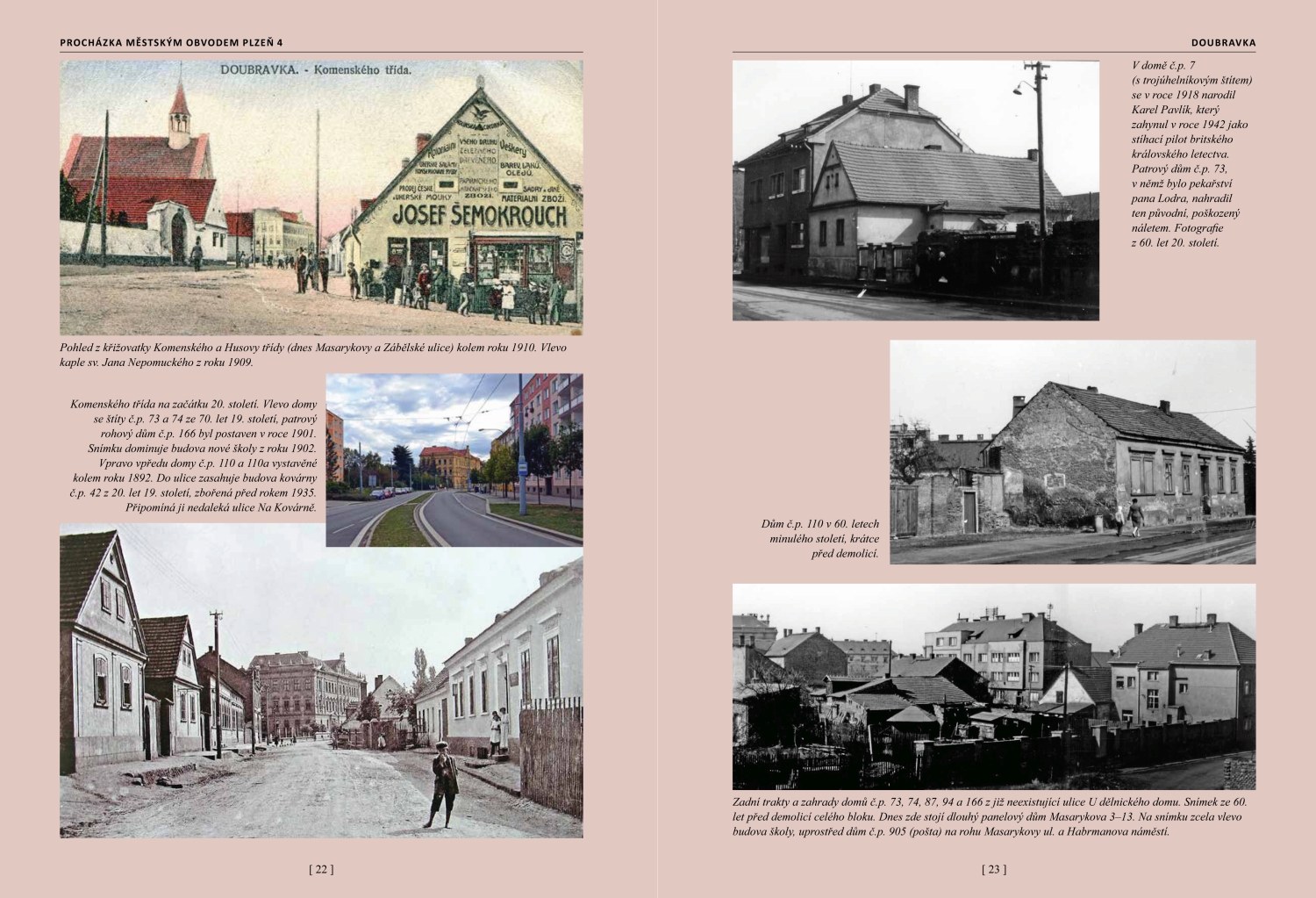 Kniha o minulosti i současnosti městského obvodu Plzeň 4 (Doubravka, Lobzy, Letná, Újezd, Bukovec a Červený Hrádek). Unikátní srovnání historických i současných fotografií dokumentuje proměny, které naše okolí provází. V knize nechybí výletní restaurace Zábělá, kostely, kapličky a křížky, školy, průmyslové podniky, mosty, parky ani železnice a fotografie také připomenou, jak vypadala tato část města po náletech na konci druhé světové války. Kniha vyšla ve spolupráci s Úřadem městského obvodu Plzeň 4.
