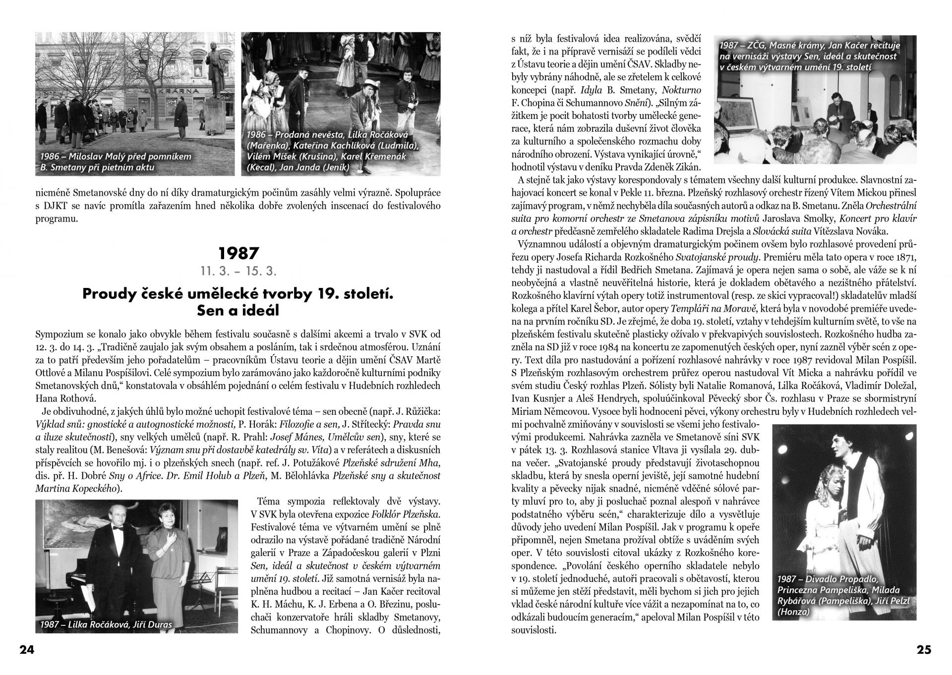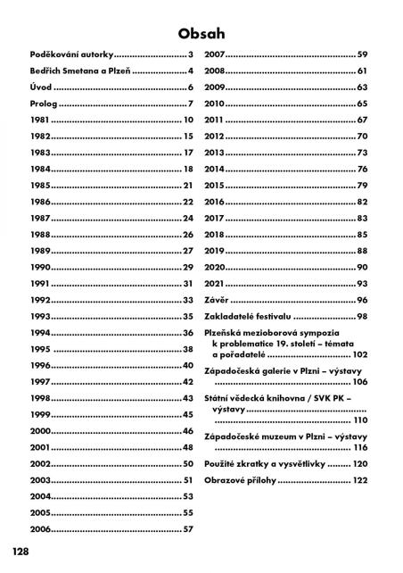 Kniha přináší kompletní a podrobnou historii multioborového festivalu Smetanovské dny zaměřeného na období 19. století, jehož první ročník se konal v Plzni v roce 1981. Publikace charakterizuje a dokumentuje zrod a vývoj festivalu od jeho počátků až do roku 2021. Prostřednictvím dokumentů a citací z dobového tisku seznamuje čtenáře s podněty důležitými pro vznik festivalu, se záměry zakladatelů a s jejich realizací. Stejně pečlivě a detailně se věnuje i dalším ročníkům. Autorka v knize hojně cituje vzpomínky zakladatelů i některých účastníků Smetanovských dnů. Vlastní text o historii festivalu je uveden kapitolou o Bedřichu Smetanovi, významu jeho osobnosti a jeho vztahu k Plzni. Texty doprovázejí dobové fotografie z festivalových produkcí a reprodukce vybraných archivních materiálů. Kniha je první a jedinou publikací, která se historií festivalu zabývá, a historické materiály jsou takto publikovány vůbec poprvé.