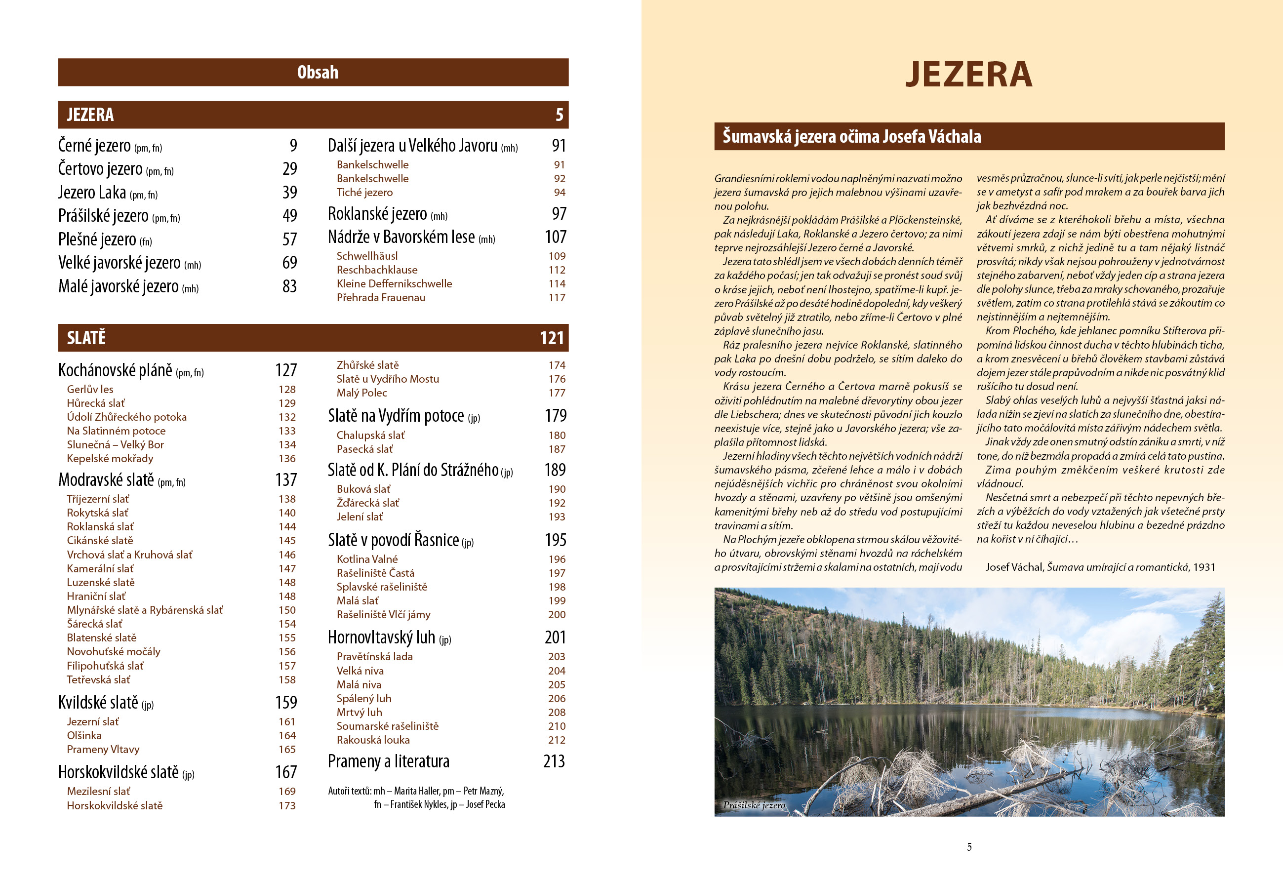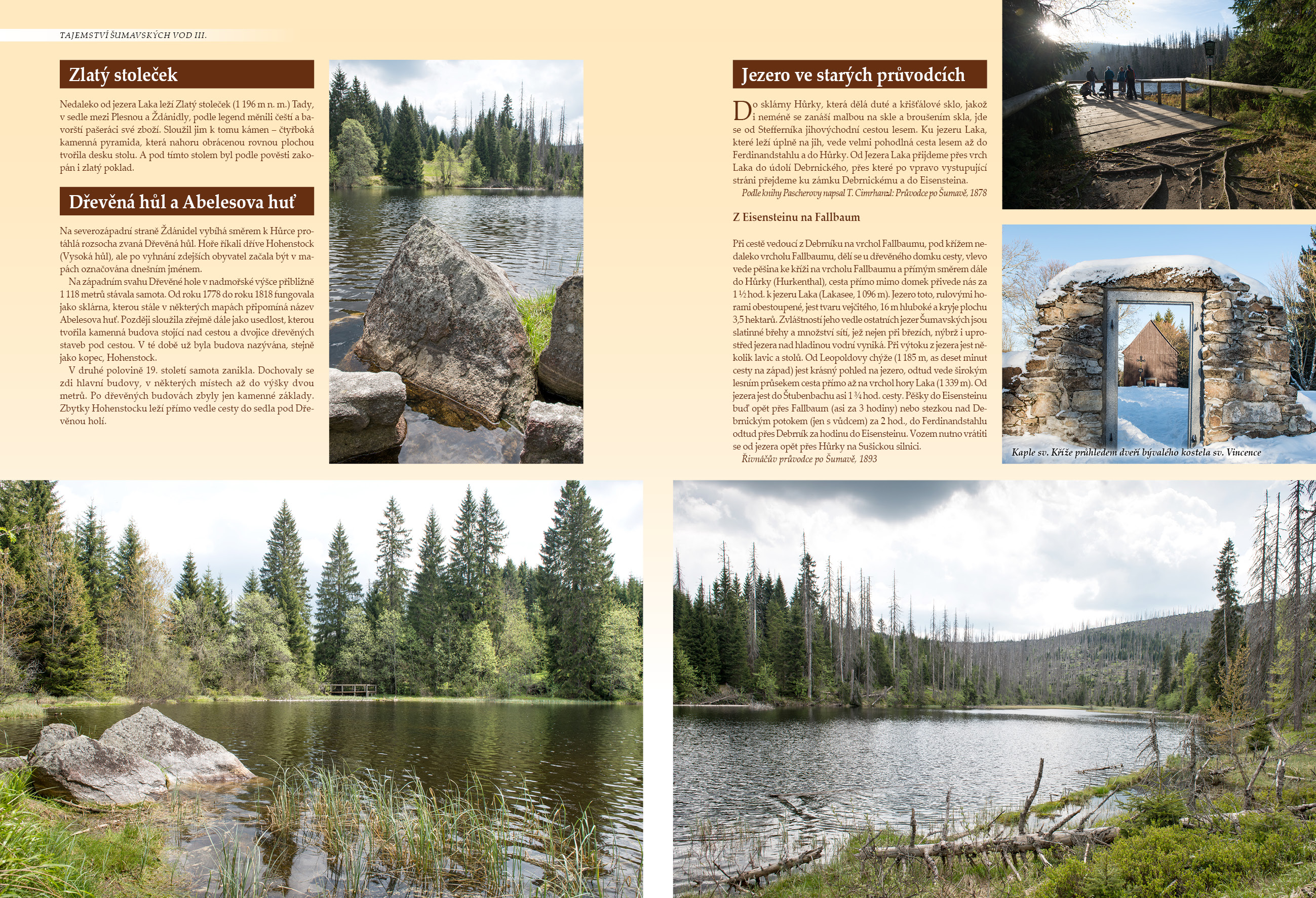 Kniha volně navazuje na velmi úspěšnou řadu „Tajemství šumavských vrcholů“ a zejména na publikace „Tajemství šumavských vod I.“ (2015, řeky Vydra, Křemelná, Ostružná, Řezná, Úhlava a jejich přítoky) a „Tajemství šumavských vod II. (2016, Otava, Vltava, Schwarzenberský kanál). Třetí díl je zaměřen na šumavská jezera, nádrže a slatě na obou stranách hranice.